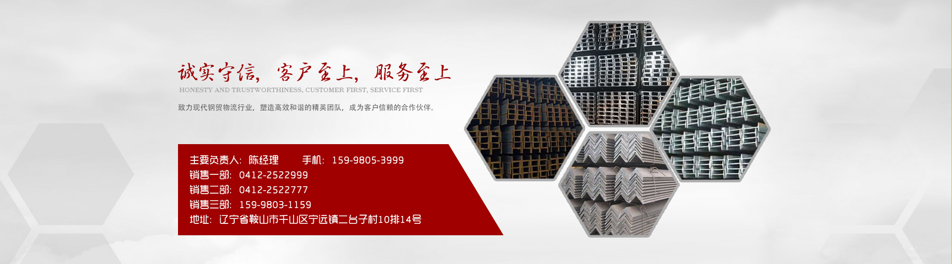 鞍山市鑫華通貿(mào)易有限公司位于鞍山二臺(tái)子鋼材市場(chǎng)10排14號(hào)。公司主要經(jīng)營(yíng):H型鋼、工字鋼、槽鋼、角鋼、板等各種鋼材。多年來(lái)在新老客戶以及各鋼廠的大力支持下,使得公司的業(yè)務(wù)得到飛躍發(fā)展、并與寶得、鞍鋼、津西、天柱、萊鋼、馬鋼、本鋼等鋼廠形成良好的戰(zhàn)略合作伙伴。我們致力于成為中國(guó)北方專業(yè)的鋼材統(tǒng)購(gòu)分銷供應(yīng)商。我公司一直遵循“不忘初心 方得始終”的企業(yè)精神和“誠(chéng)實(shí)守信,客戶至上,服務(wù)至上”的企業(yè)宗旨,致力現(xiàn)代鋼貿(mào)物流行業(yè),塑造一支和諧的精英團(tuán)隊(duì),成為客戶信賴的合作伙伴。我公司努力提高經(jīng)營(yíng)理念和改變營(yíng)銷方式,以實(shí)力服務(wù)市場(chǎng)、以誠(chéng)信保證客戶滿意、以優(yōu)質(zhì)產(chǎn)品樹立信譽(yù),從而使公司不斷成長(zhǎng)壯大,鞍山鑫華通誠(chéng)邀新老客戶加強(qiáng)合作,共同發(fā)展,共同進(jìn)步,共創(chuàng)一個(gè)互惠互利的合作平臺(tái)!